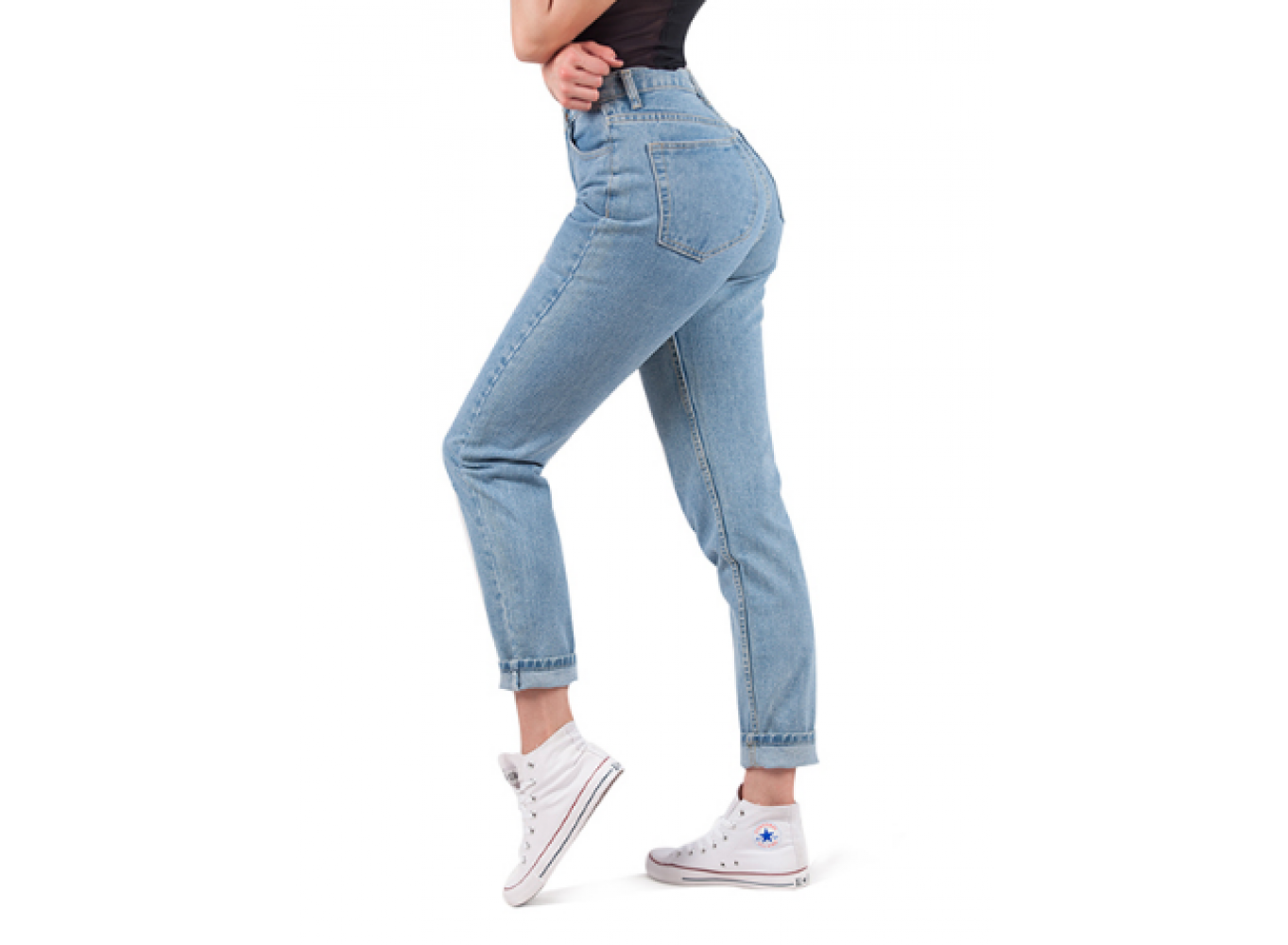 BYDI Calça Mom Jeans Cintura Alta Vintage (Cores)