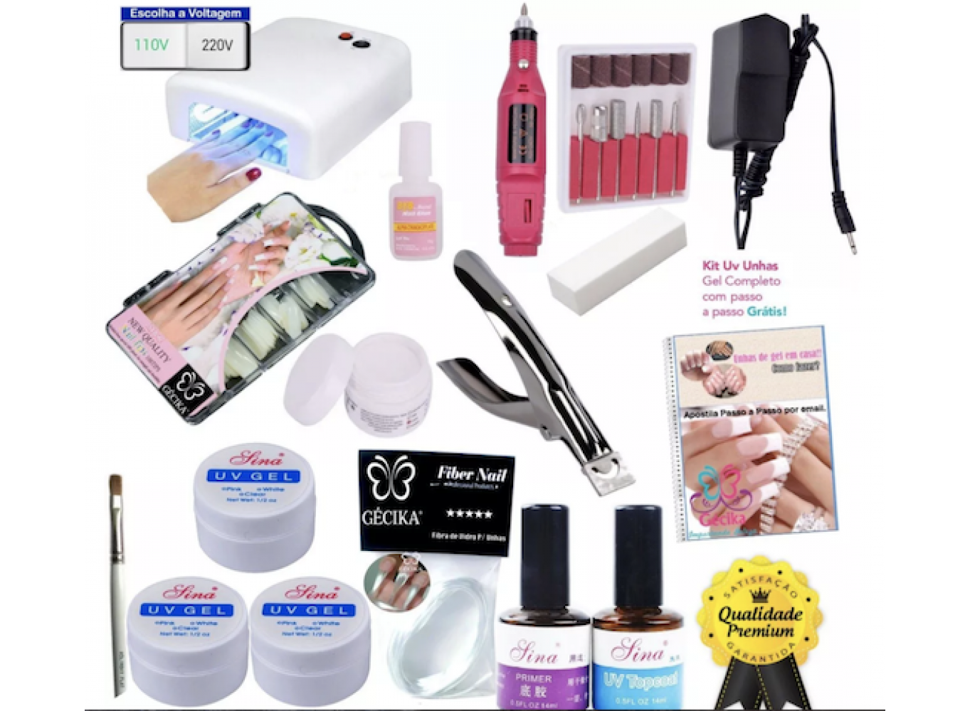03 x Gel UV (Sortidos entre: Transparente (Clear), White (branco) e Rosa (Pink)