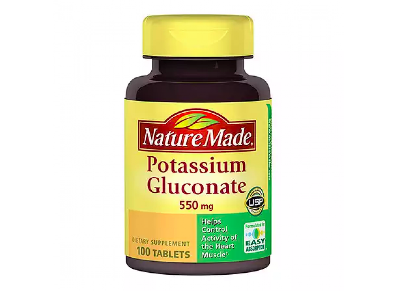 O Glutonato de Potássio Nature Made® 550 mg contém 90 mg de potássio, que ajuda a suportar várias funções do corpo, como coração e função saudável do nervo. † O potássio ajuda a função cardíaca ajudando a controlar a atividade do músculo cardíaco. †