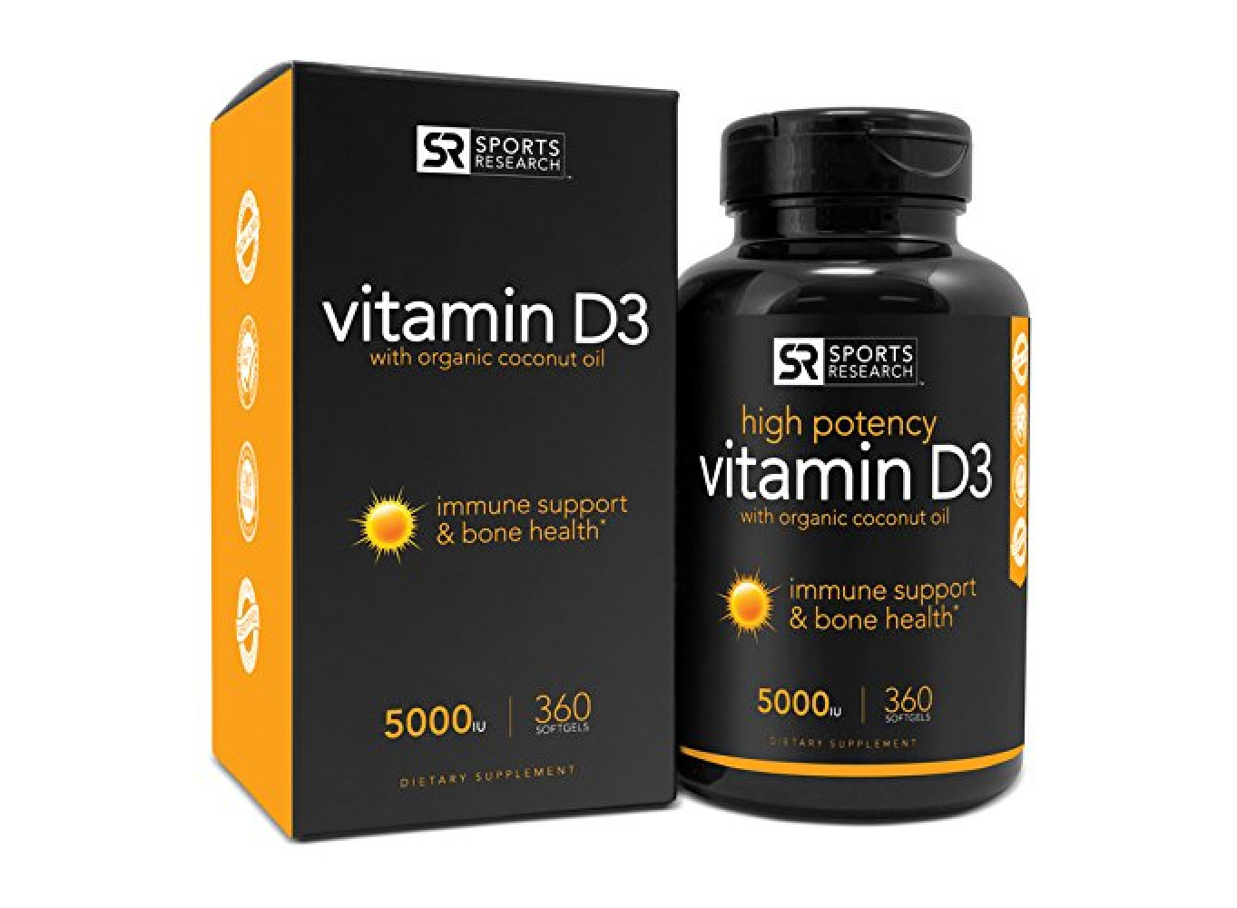 Sports Research Vitamin D3 with Organic Coconut Oil 360 Capsulas