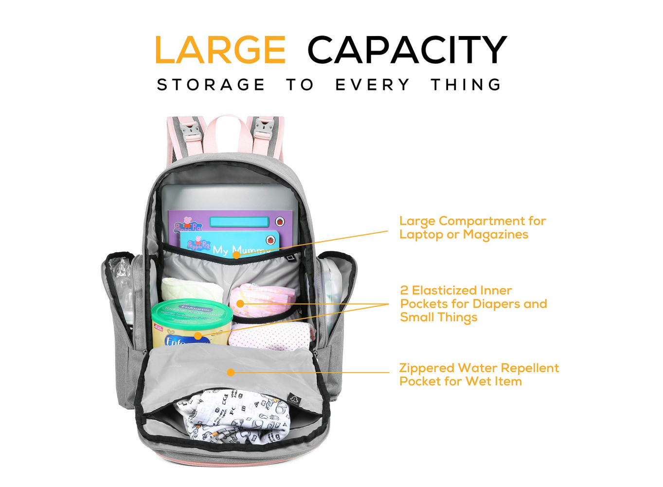 Mommore Mochila de Maternidade Multifuncional Cinza e Rosa