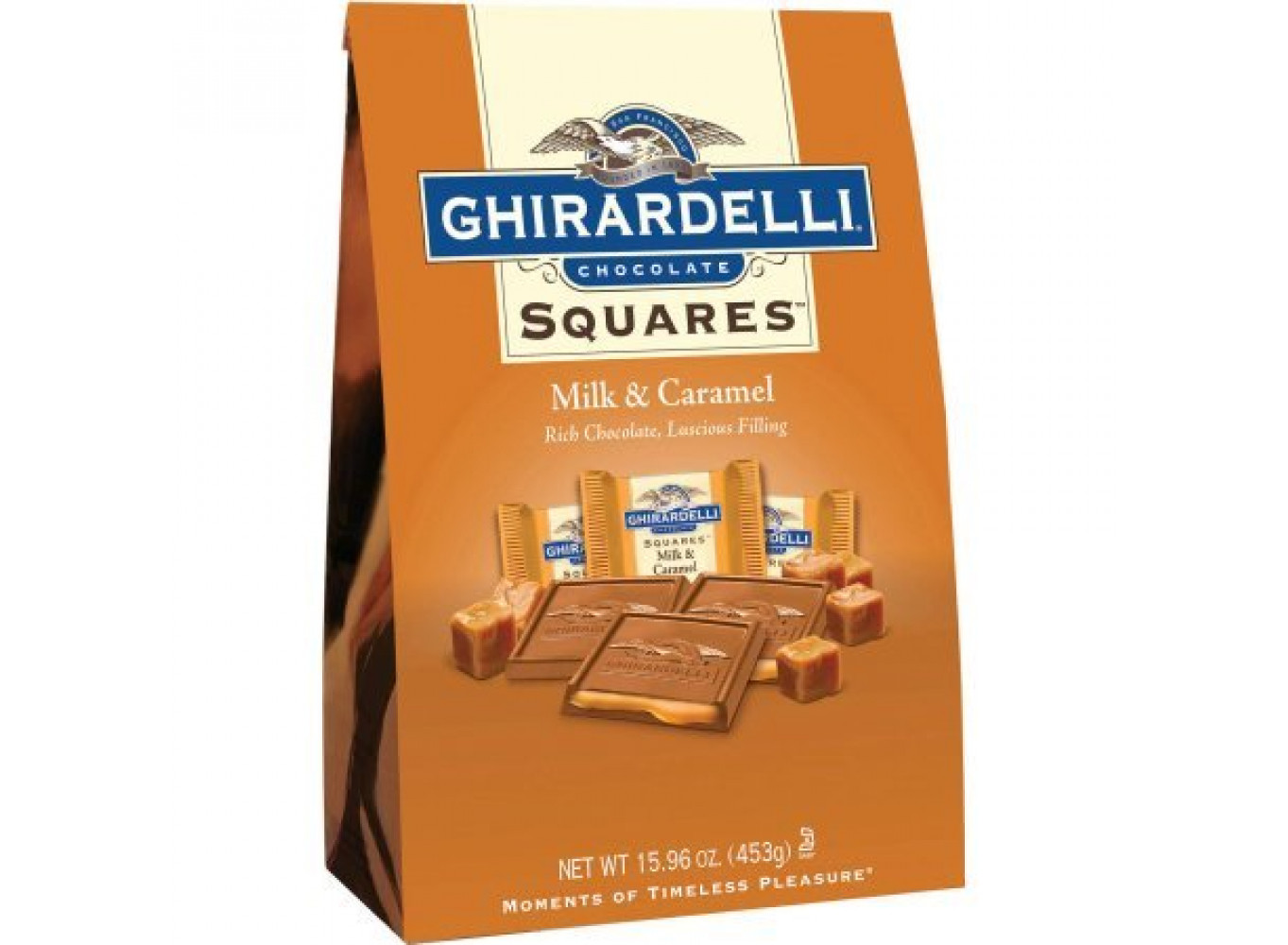 - Quadrados de chocolate ao leite Ghirardelli com recheio de caramelo doce
