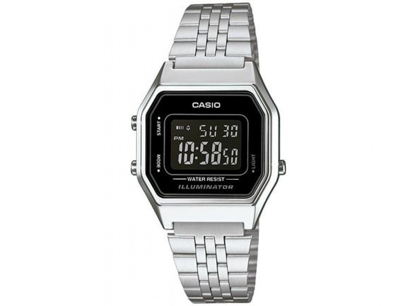 Casio Relógio Digital Vintage LA680WA-1BDF Prata e Preto com Visor Preto