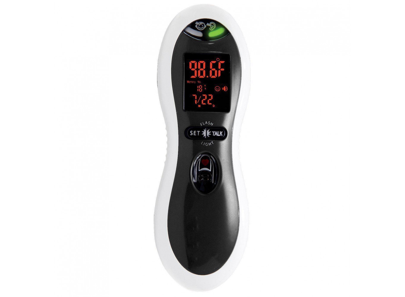 Também pode ser utilizado para medir a temperatura da mamadeira, da comida ou do quarto, basta pressionar os botões "ear" e "head" juntos próximo ao objeto e liberar o botão "ear".