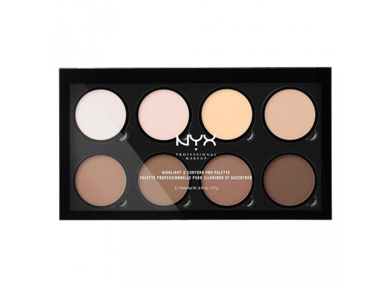 NYX Professional Makeup Highlight & Contour Pro Palette allows you to define your features like a pro. This refillable highlight and contour palette includes 8 customizable highlighting and contouring shades perfect for emphasizing your favorite features.