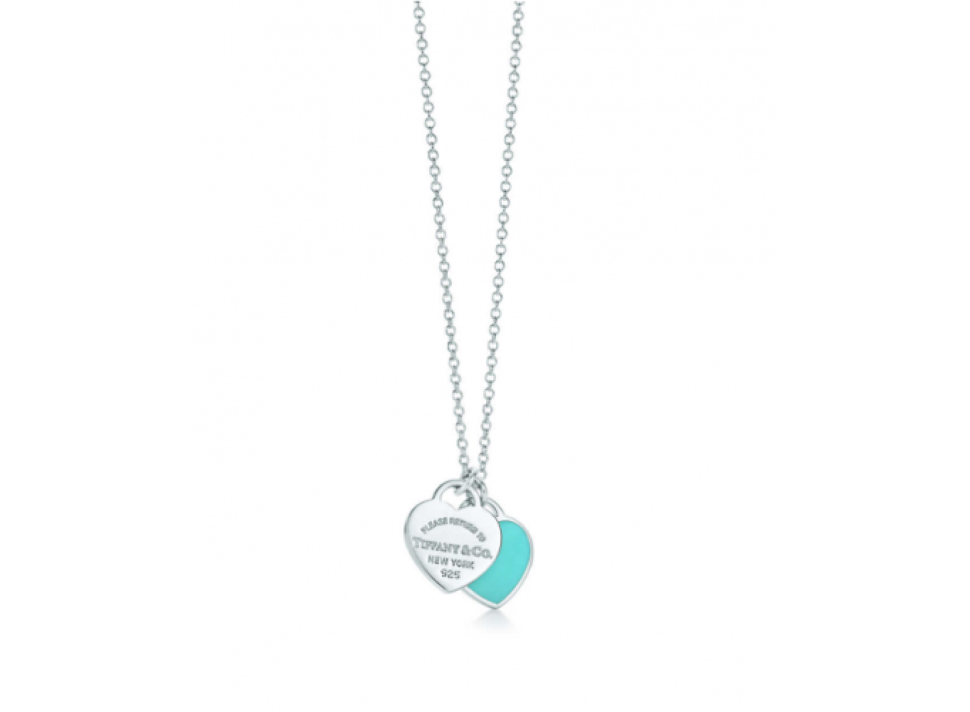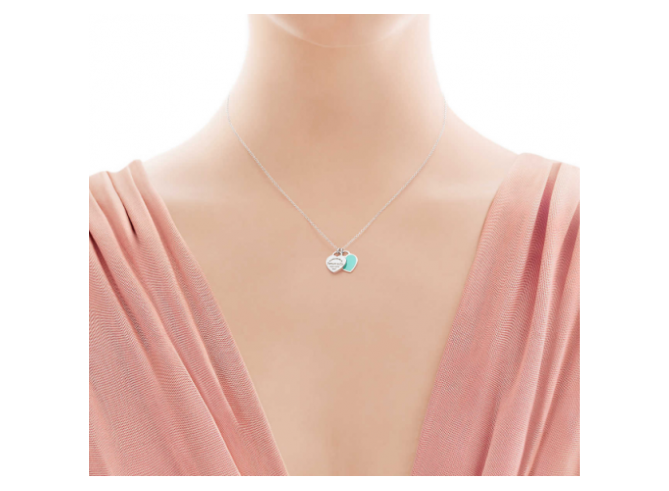 Tiffany & Co. Mini Double Heart Tag Pendant Cordao Colar
