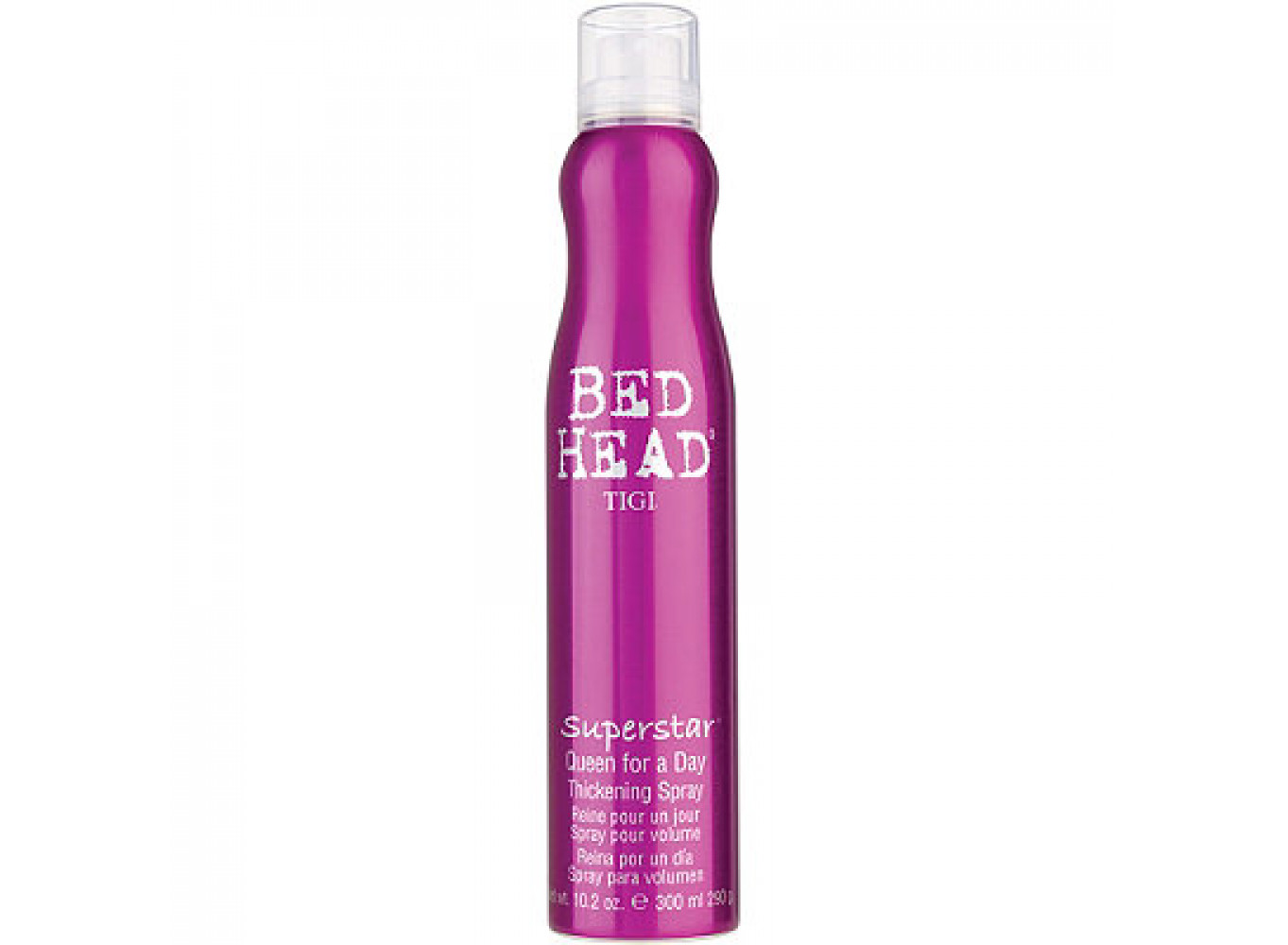TIGI Bed Head Superstar Queen for a Day é um spray volumador. Seu cabelo ganha corpo e densidade que duram por muito tempo!